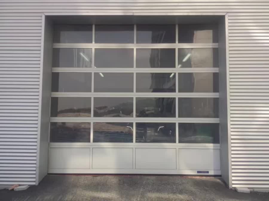 透視門是提升門的一種,門體是由鋁合金門框、透明材質(zhì)門板和導(dǎo)軌組成。開啟時門扇面板沿導(dǎo)軌直向上提升至洞口上方,或平翻置天花板下方。用于需要采光的出入口,如展廳、商鋪、4S店等