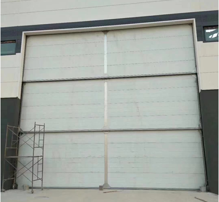 多段重疊垂直提升門常用于門洞較高,但內(nèi)部安裝空間不足的工業(yè)廠房中,因為可以分成多段門板上升,然后重疊一起,所以不需要升到內(nèi)部去,可以解決內(nèi)部安裝空間不足的問題。