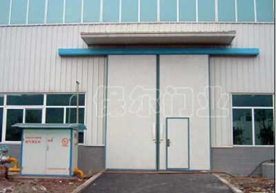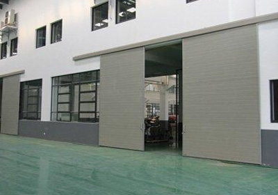 保爾平移式工業(yè)門在門洞上下裝有導軌,門扇置于兩道軌中間,通過齒輪傳動,實現(xiàn)左右啟閉。平移方式的工業(yè)門對建筑上下空間限制小,但要求門洞左右兩邊有足夠的空間放置門體,啟閉平穩(wěn)可靠,手動輕松自如。一般用于倉庫、工業(yè)廠房